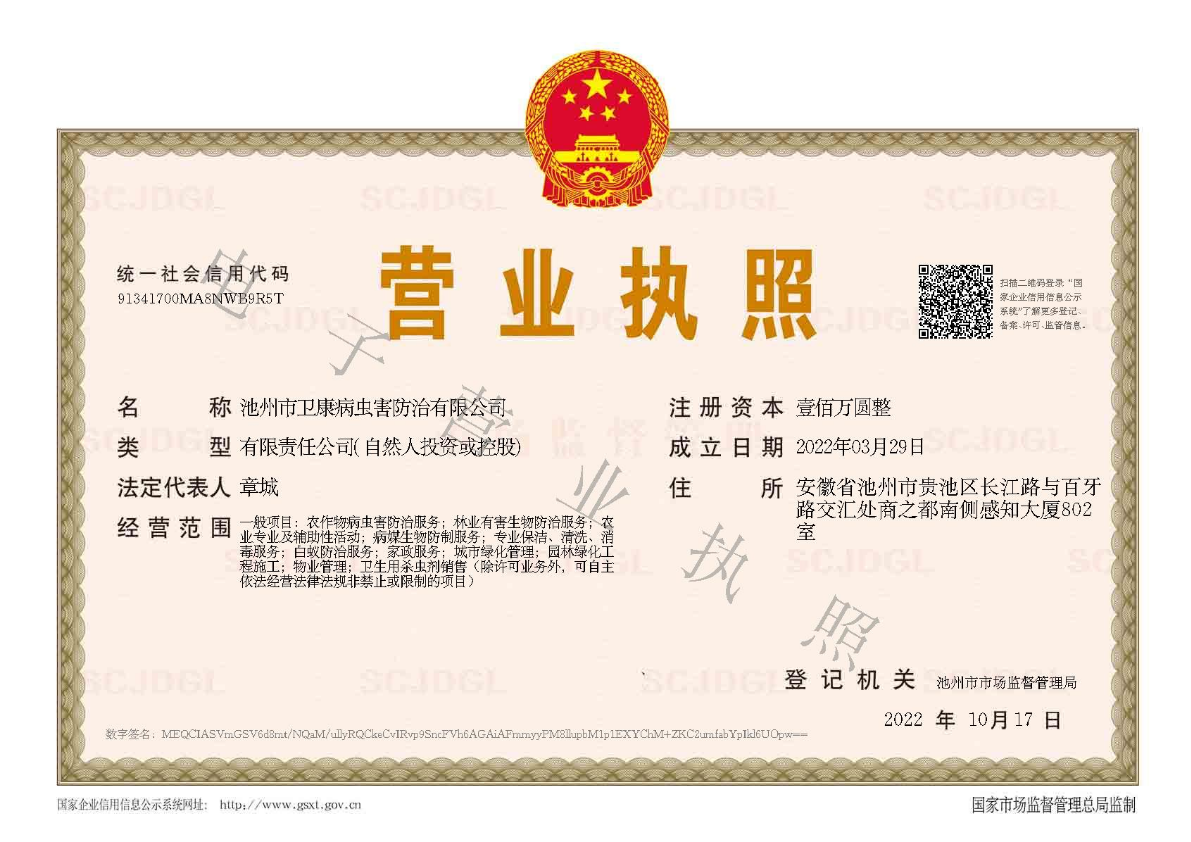 - 池州市衛(wèi)康病蟲(chóng)害防治有限公司是一家專(zhuān)業(yè)從事有害生物防治、鼠蟲(chóng)害控制管理、白蟻防治服務(wù)、衛(wèi)生防疫消毒、清潔與室內(nèi)凈化服務(wù)、殺蟲(chóng)劑和器械銷(xiāo)售及售后服務(wù)為一體的專(zhuān)業(yè)綜合發(fā)展公司,池州市衛(wèi)康病蟲(chóng)害防治有限公司2022年成立,是由多名工作5年以上的蟲(chóng)害防治技術(shù)員組成。經(jīng)驗(yàn)很豐富! 我們奉行“安全為本,服務(wù)第一,客戶(hù)至上”為服務(wù)宗旨,讓客戶(hù)滿(mǎn)意為經(jīng)營(yíng)理念,致力于為客戶(hù)提供安全、科學(xué)、經(jīng)濟(jì)、的蟲(chóng)害防治方案。 我...